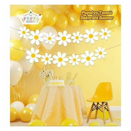 Paket içerisinde 1 set (6 Büyük, 7 küçük adet papatya figürü) dekoratif banner bulunmaktadır.